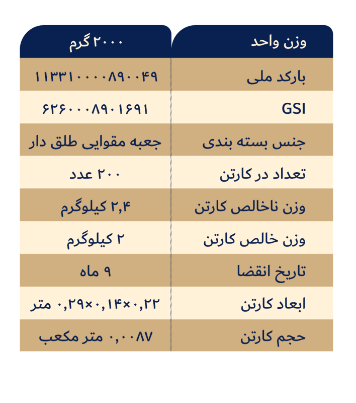 هر بسته از کنجد عسلی مخلوط شامل 32 عدد کنجد عسلی در انواع ساده، دارچینی، زعفرانی و گل محمدی است. این فرآورده فاقد اسانس، رنگ و شکر افزوده بوده و در تهیه آن از پودر دارچین، زعفران رشتهای و پودر گل محمدی ممتاز استفاده شده و در یک بستهبندی زیبا، قابل استفاده در مهمانیها و مناسبتهای مختلف است. کنجد عسلی پذیرایی قابل استفاده برای گروههای سنی بالای 2 سال میباشد.