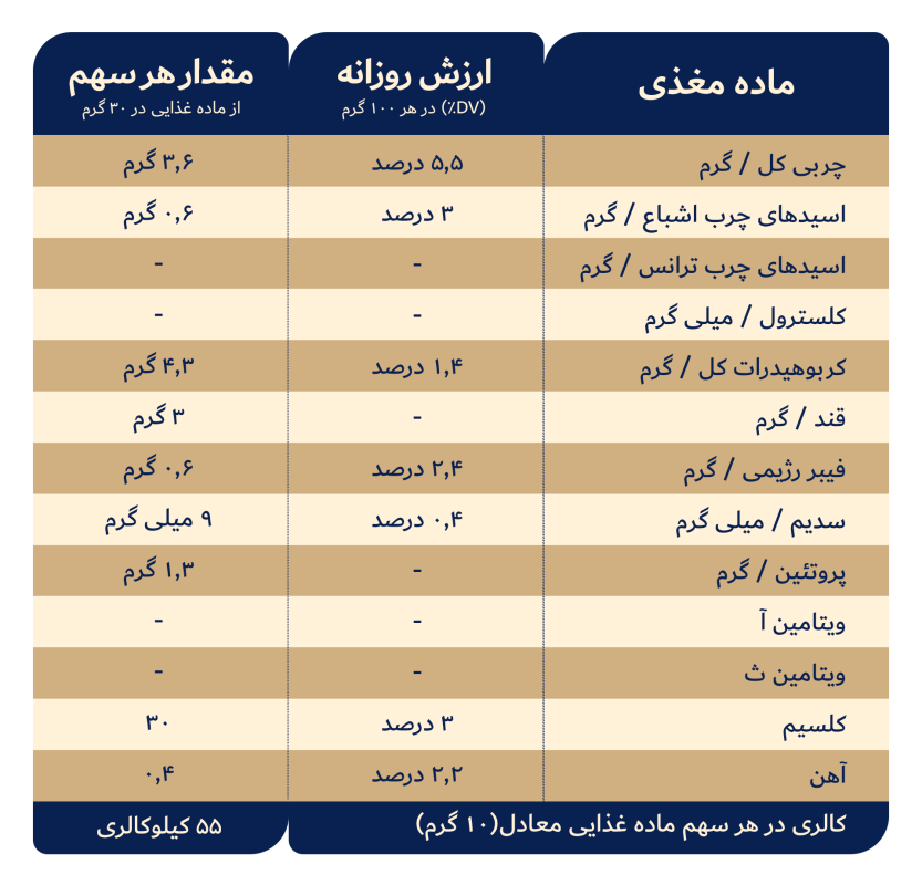 جدول حقایق تغذیهای