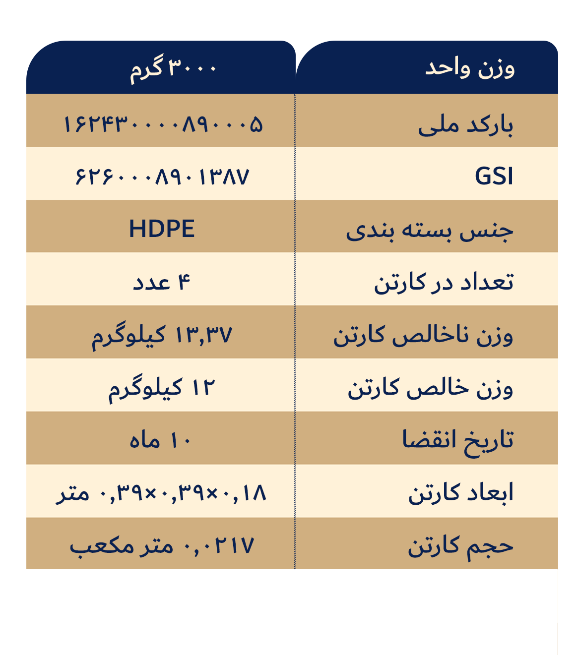 جدول حقایق تغذیهای