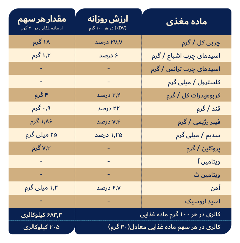 جدول حقایق تغذیه‌ای